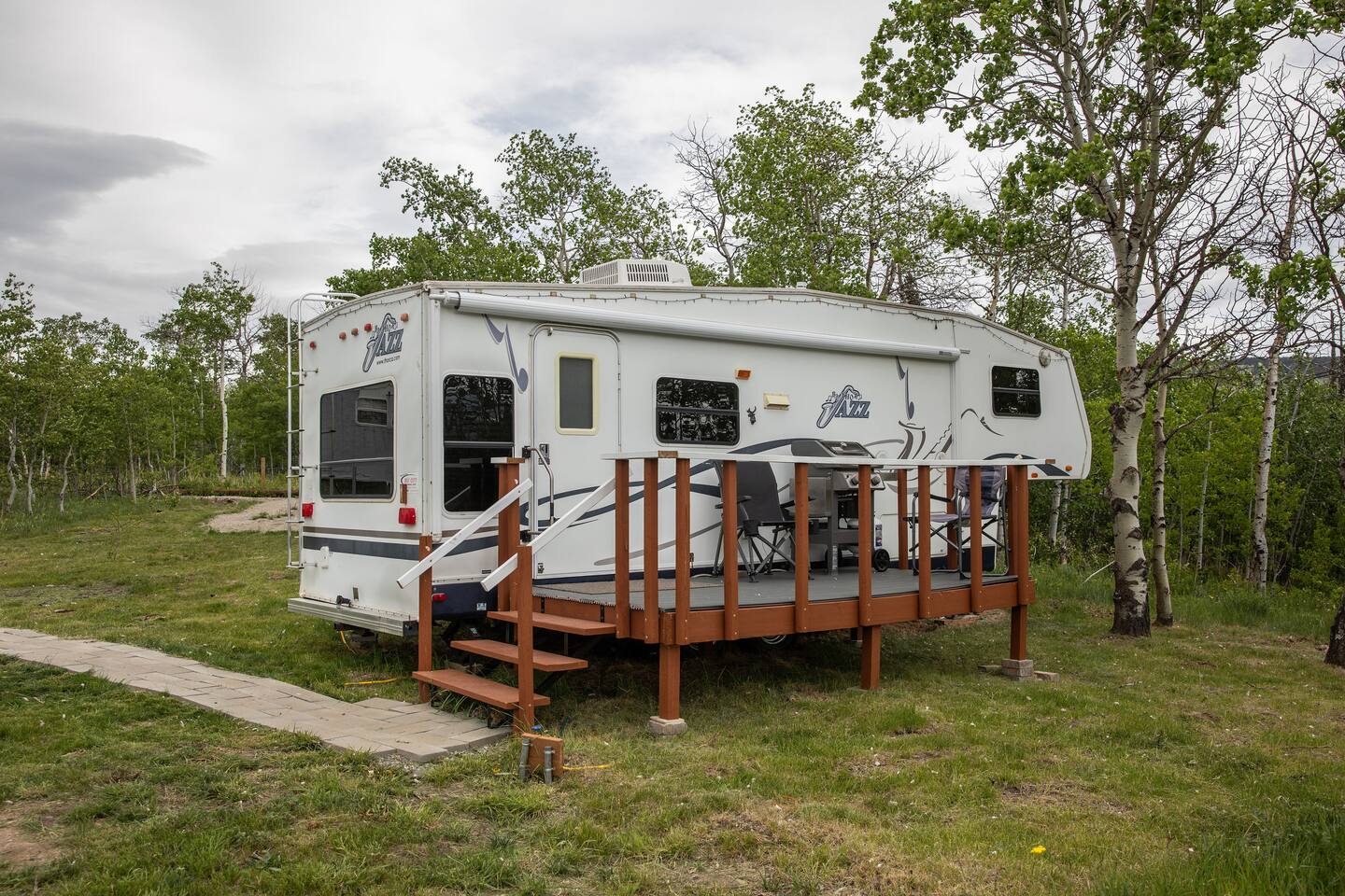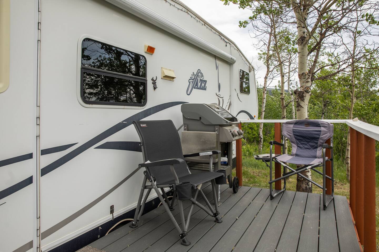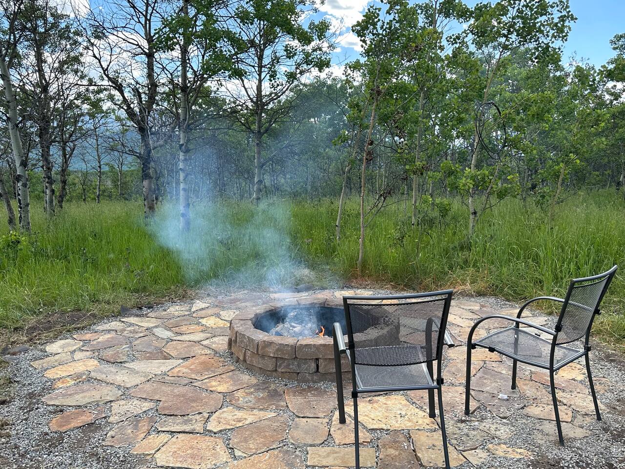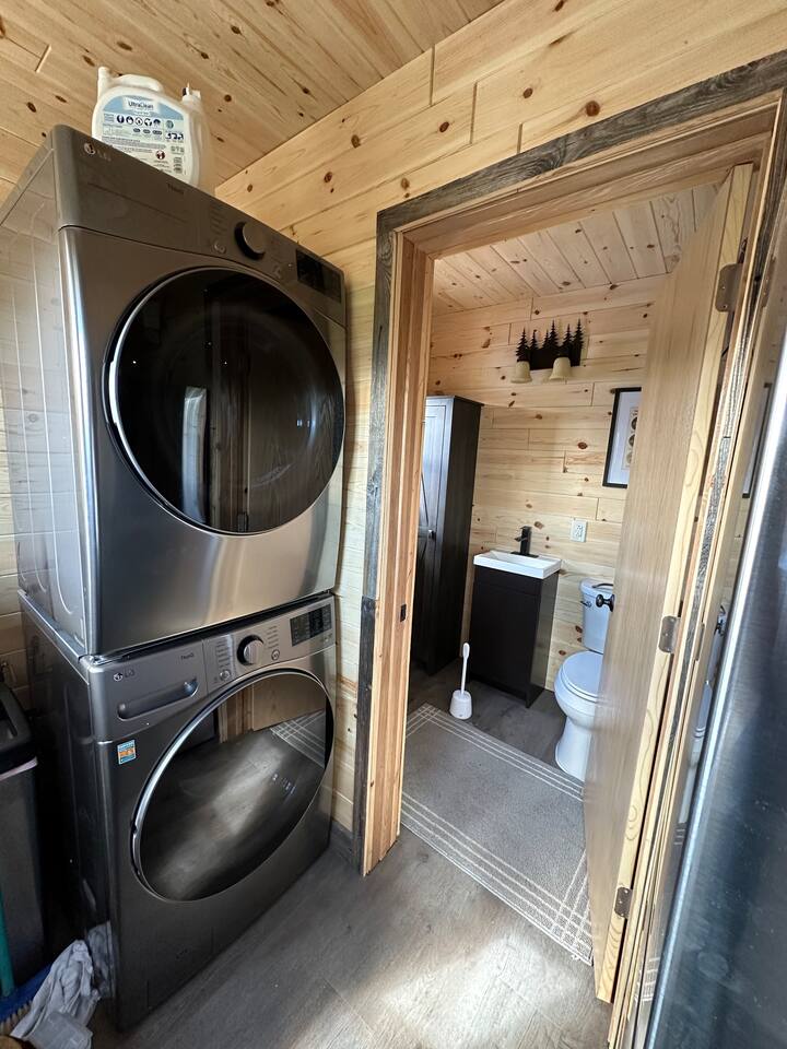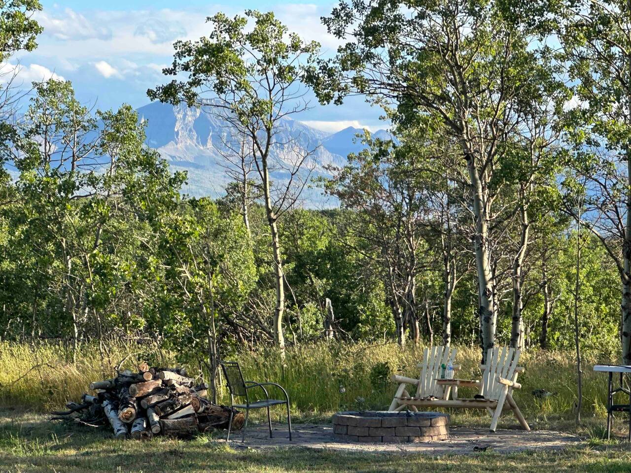 There is a separate adjacent Wash House that contains a full bathroom, washer/dryer and full size fridge to store extra groceries. Although the trailer does have full bathroom and shower, this makes it more like home. Hot, cold and filtered water are provided in the trailer. The guests have access to the shared front yard area with fire pit and trails through the aspen forest.