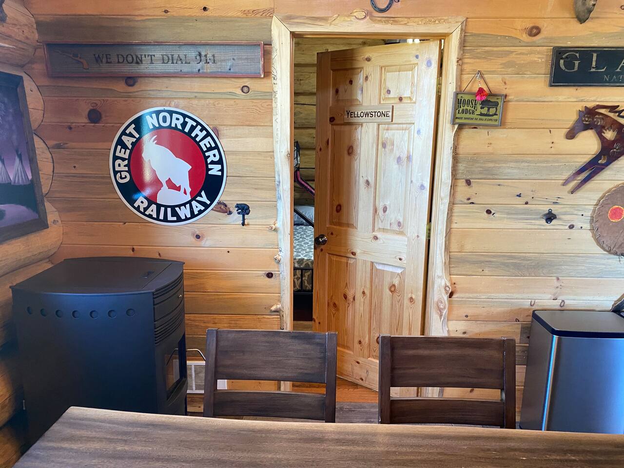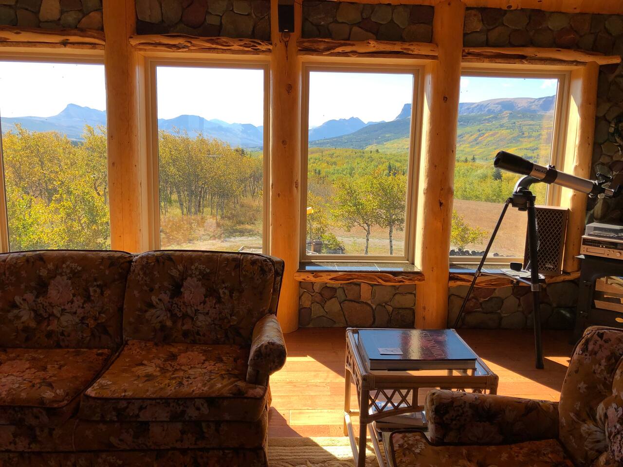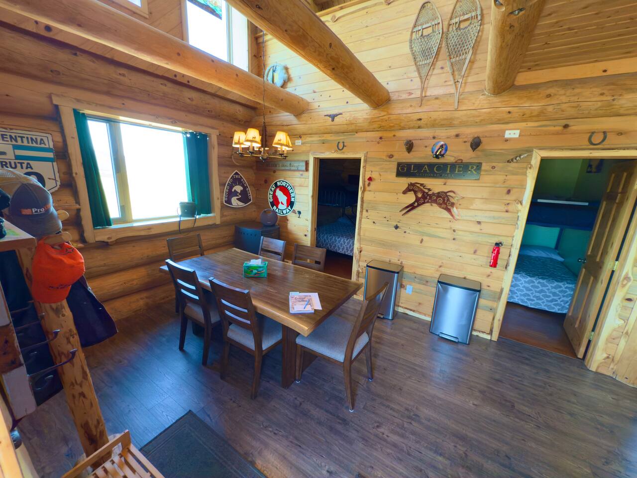 The Glacier Ridge chalet has 3 rooms that can sleep 8 with the downstairs bedrooms with a twin bunk over the lower queen beds. The chalet is kid and animal friendly. The upstairs area is a handcrafted wood with seating for all guests with 300° of windows that allow viewing of the entire Babb/St. Mary Area. There is a small upper deck for animal viewing and star gazing. The chalet is located in a Dark Sky zone allowing for incredible start gazing and occasional viewing of the North Lights to the North in late summer. The adjacent neighbor offers both trail riding or ATV adventures. Glacier Ridge is 1/2 mile down a private road from the renowned Duck Lake Lodge. The lodge has additional a full restaurant, Pizza oven and road house bar with local entertainment a few nights a week. Glacier ridge is located 3 miles outside of Babb and 7 miles outside of St. Mary. Cellular coverage is by both Verizon, Rogers/Fido and limited ATT.