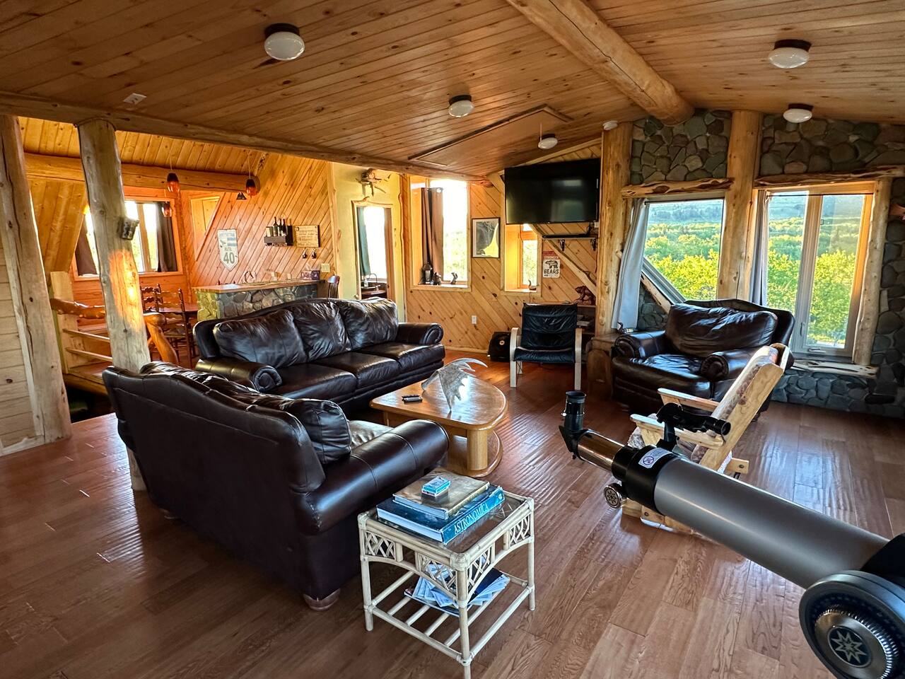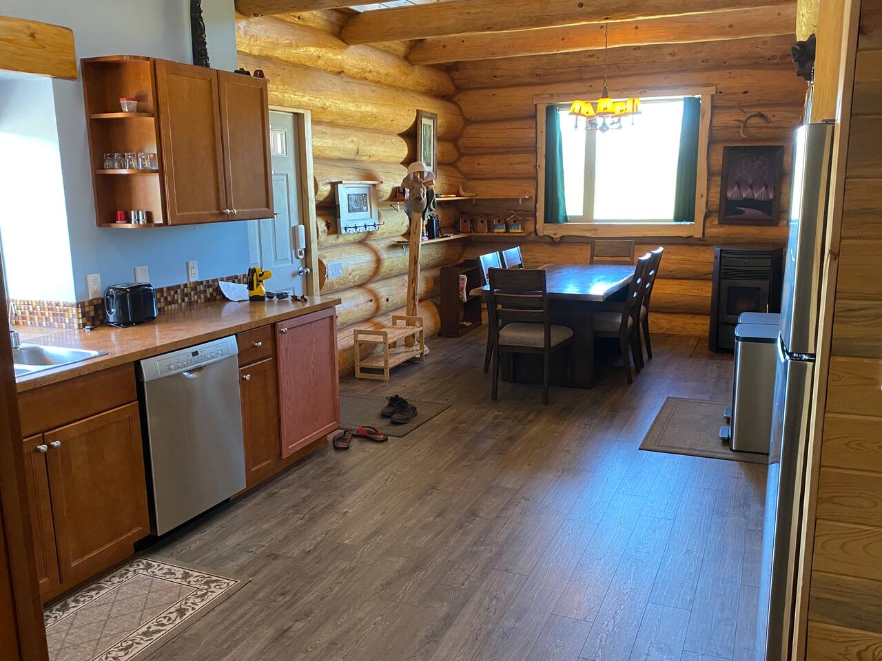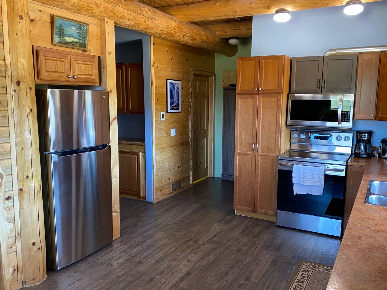 The Glacier Ridge chalet has 3 rooms that can sleep 8 with the downstairs bedrooms with a twin bunk over the lower queen beds. The chalet is kid and animal friendly. The upstairs area is a handcrafted wood with seating for all guests with 300° of windows that allow viewing of the entire Babb/St. Mary Area. There is a small upper deck for animal viewing and star gazing. The chalet is located in a Dark Sky zone allowing for incredible start gazing and occasional viewing of the North Lights to the North in late summer. The adjacent neighbor offers both trail riding or ATV adventures. Glacier Ridge is 1/2 mile down a private road from the renowned Duck Lake Lodge. The lodge has additional a full restaurant, Pizza oven and road house bar with local entertainment a few nights a week. Glacier ridge is located 3 miles outside of Babb and 7 miles outside of St. Mary. Cellular coverage is by both Verizon, Rogers/Fido and limited ATT.